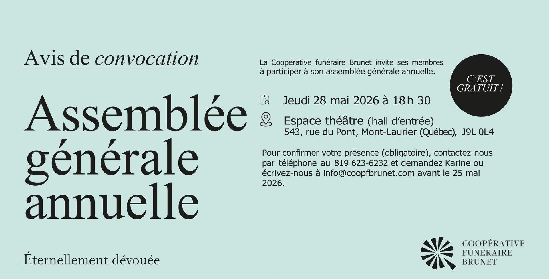La Coopérative funéraire Brunet du 680, rue de la Madone, à Mont-Laurier, offre à la famille éprouvée ses plus sincères condoléances.